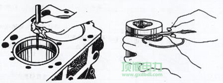 圖2-5-12 活塞環(huán)開口間隙的檢查 圖2-5-13 活塞環(huán)軸向間隙的檢查